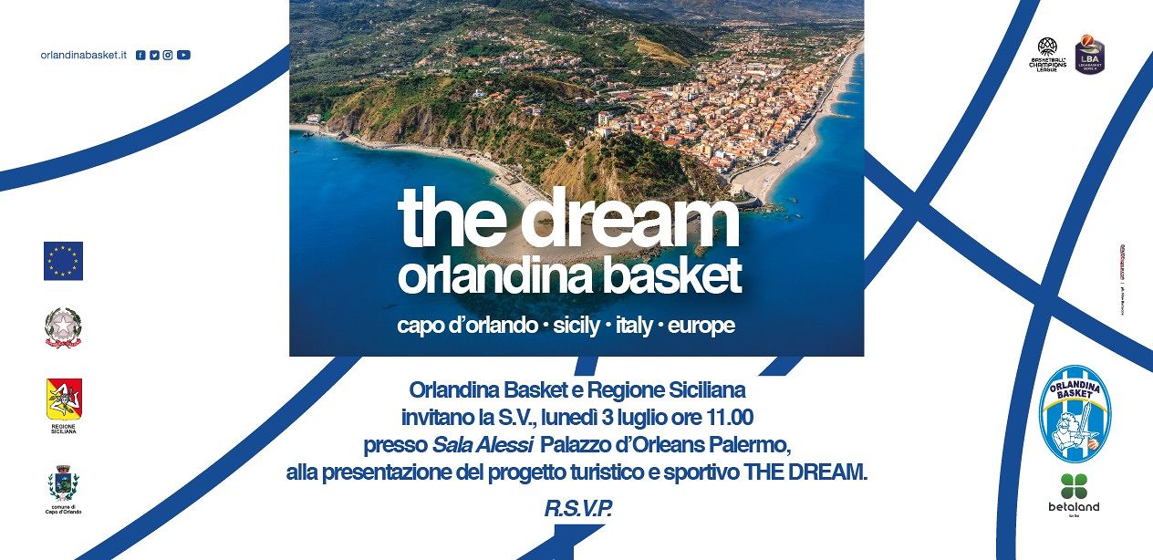 Conferenza Stampa di lunedì 3 luglio ore 11.00 a Palermo, presso la Sala Alessi a Palazzo d’Orléans. Si parlerà della qualificazione dell’Orlandina Basket alla Basketball Champions League 2017-18 e sarà presentato il progetto turistico e sportivo denominato THE DREAM.