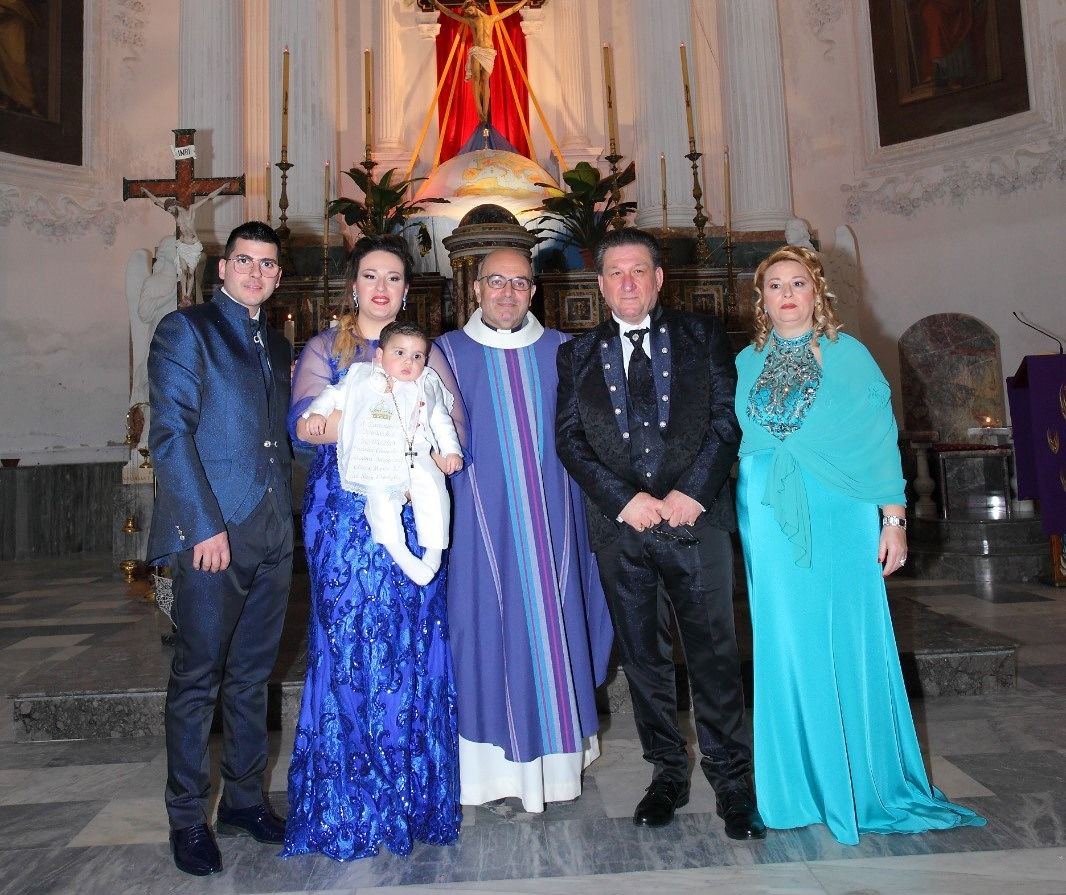A battezzare il piccolo Dominick i padrini Carmelo e Caterina Filippazzo che sono anche i nonni. Tante le persone che hanno partecipato al lieto evento in una chiesa madre gremita in ogni ordine di posto.