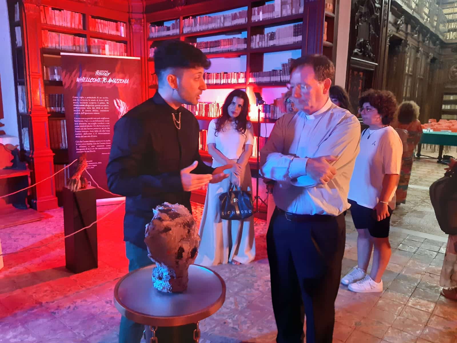 La monumentale sala della biblioteca Lucchesiana di Agrigento ha ospitato ieri lunedì 28 agosto, la presentazione della rassegna d’arte “Pacem in terris – The Whellcome Trilogy e Marco 5.9”, di Giuseppe Miccichè , a cura di Francesco Rizzo e Cristina Iacono