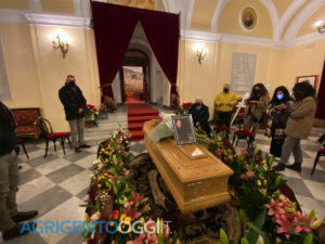 Lacrime e commozione per la camera ardente di Pippo Flora, allestita, nel foyer del Teatro Pirandello. Intanto si susseguono i messaggi di cordoglio. Ad accogliere il feretro il presidente della Fondazione Pirandello Alessandro Patti.