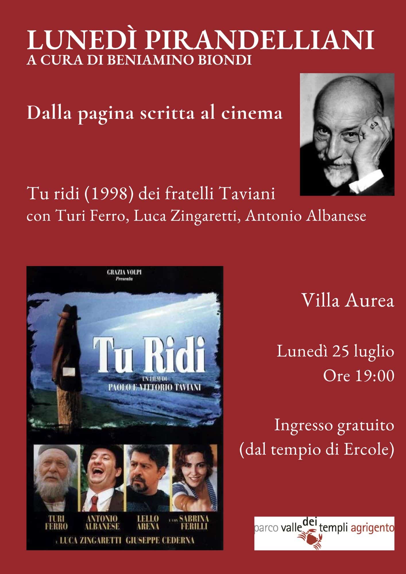 Ultimo appuntamento lunedì 25 luglio alle ore 19:00 presso Villa Aurea, con ingresso gratuito dal Tempio di Ercole, con la proiezione del film “Tu ridi” (1998) con la regia dei fratelli Taviani.