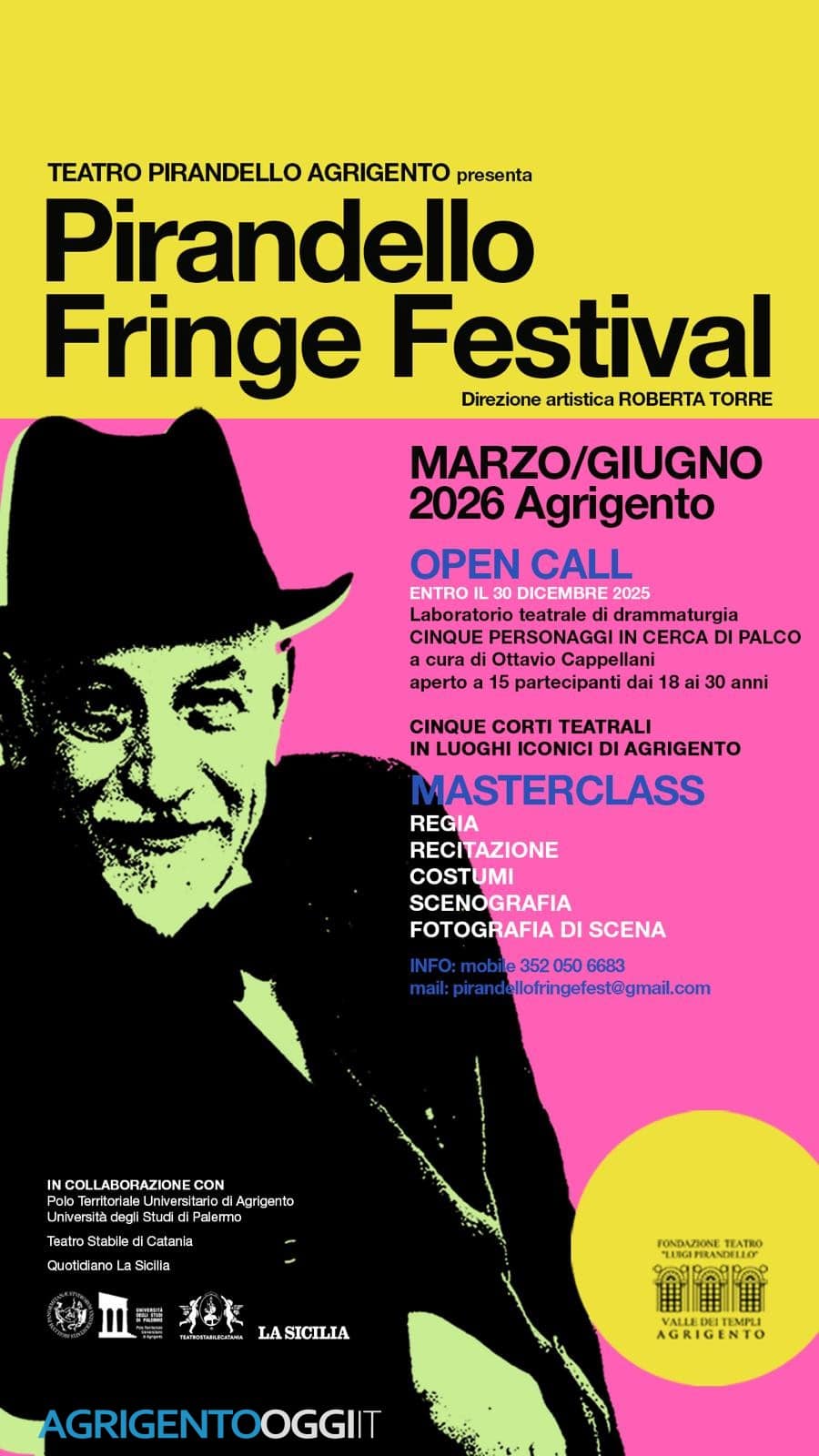 Un progetto che unisce teatro, formazione e territorio. Nasce ad Agrigento il Pirandello Fringe Festival, un’iniziativa promossa dal Teatro Pirandello in collaborazione con il Polo Universitario UNIPA, il Teatro Stabile di Catania e il quotidiano La Sicilia, con l’obiettivo di far conoscere l’opera del genio pirandelliano in chiave contemporanea ai giovani autori.