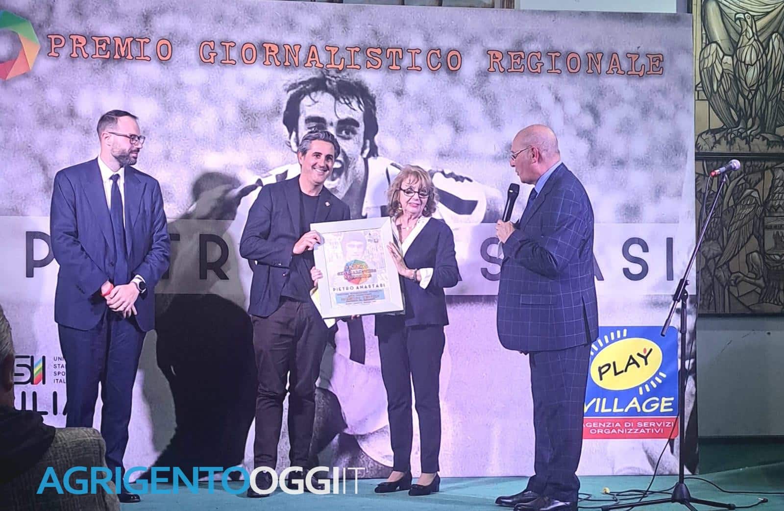 Il commento dell’Akragas SLP: A Pedara è stato consegnato il Premio giornalistico regionale “Pietro Anastasi” per i giornalisti sportivi, promosso dall’USSI – Unione Stampa Sportiva Italiana a Domenico Vecchio, giornalista agrigentino, direttore e fondatore di AgrigentoOggi. Complimenti Domenico per questo prestigioso riconoscimento giornalistico alla tua passione e all’impegno che da anni metti in campo per raccontate le cronache sportive della nostra Città, ad maiora!