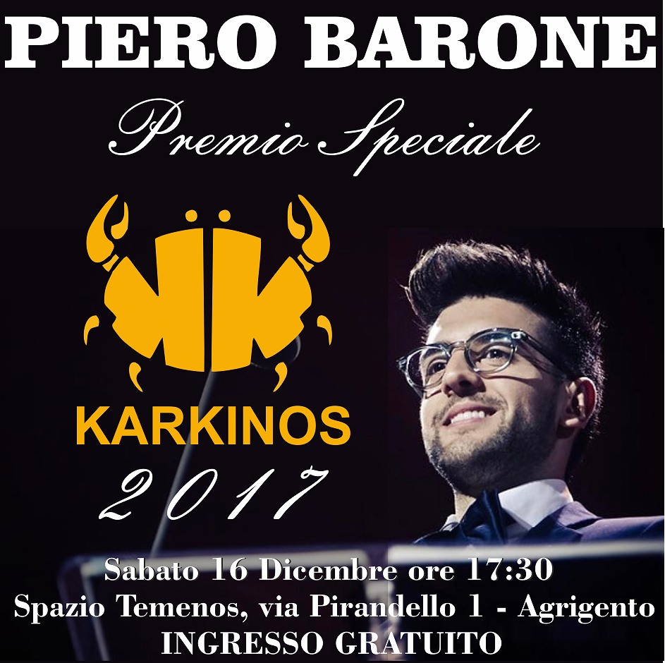 -di Eugenio Cairone- Ci sarà anche il giovane Tenore de “Il Volo”, l’agrigentino Piero Barone, tra i premiati della seconda edizione del “Premio Karkinos” organizzato dall’Associazione culturale “Antiche Tradizioni Popolari” presieduta da Carmelo Cantone.