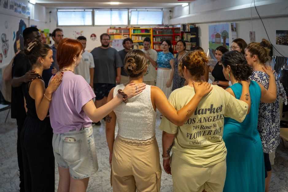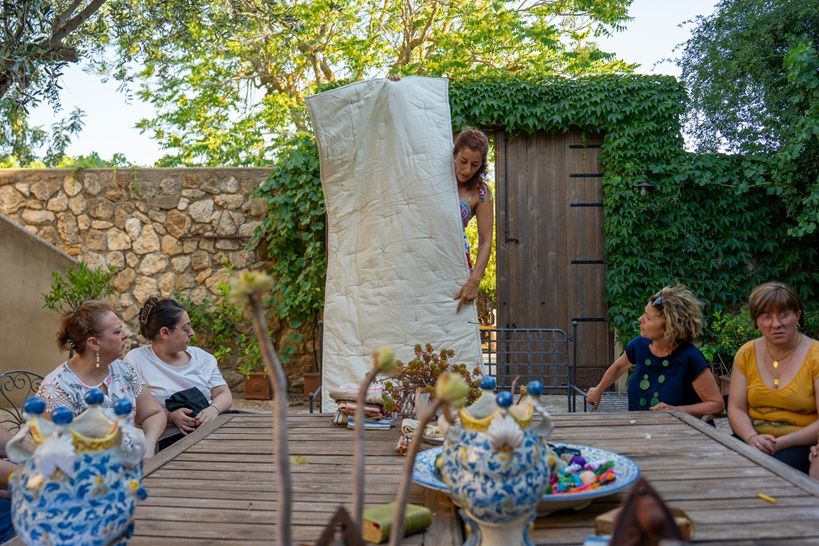 Nel centro storico di Agrigento, donne e membri della comunità si sono riuniti in un workshop di tessitura per creare una coperta collettiva, un tessuto di gesti condivisi e memoria comunitaria che accoglierà la struttura circolare. Come un uccello che costruisce il suo nido, la Silent Room sovrappone materiale, conoscenza e identità per nutrire nuove possibilità di cura. Costruendo questo spazio per il riposo, onoriamo coloro che hanno subito sofferenza e ora meritano pace. La Silent Room è un luogo per fermarsi nella Valle, per localizzare se stessi in relazione agli altri, per riflettere sulle origini ed immaginare dove potremmo andare dopo.