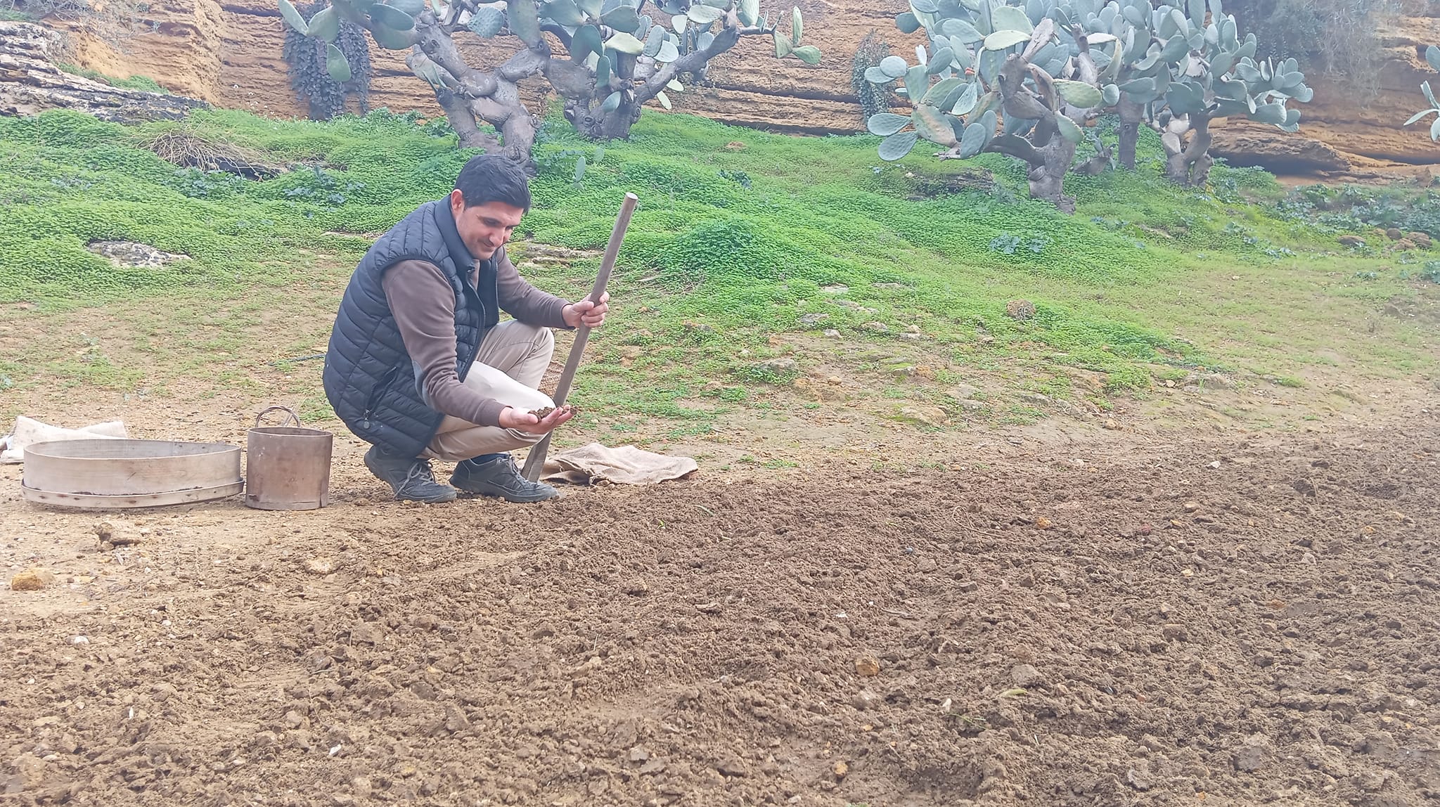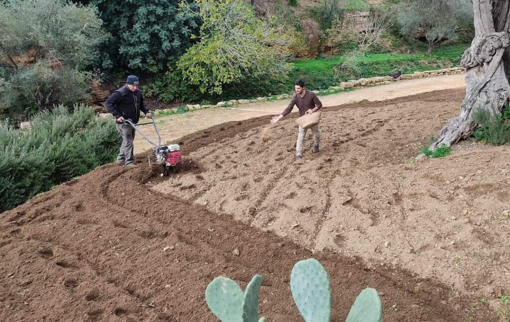 Tony Rocchetta ha seminato il grano nel giardino gestito dal Fai distribuendo il concime biologico, mentre Enzo Traversa lavorava il terreno per preparare un buon letto di semina. Una settimana dopo, è arrivata la semente del grano antico “Chiattulidda” raccolta nei campi di Tony Rocchetta dove viene coltivata, per salvarla dalla scomparsa, in collaborazione con la Stazione Sperimentale di Granicoltura della Sicilia.