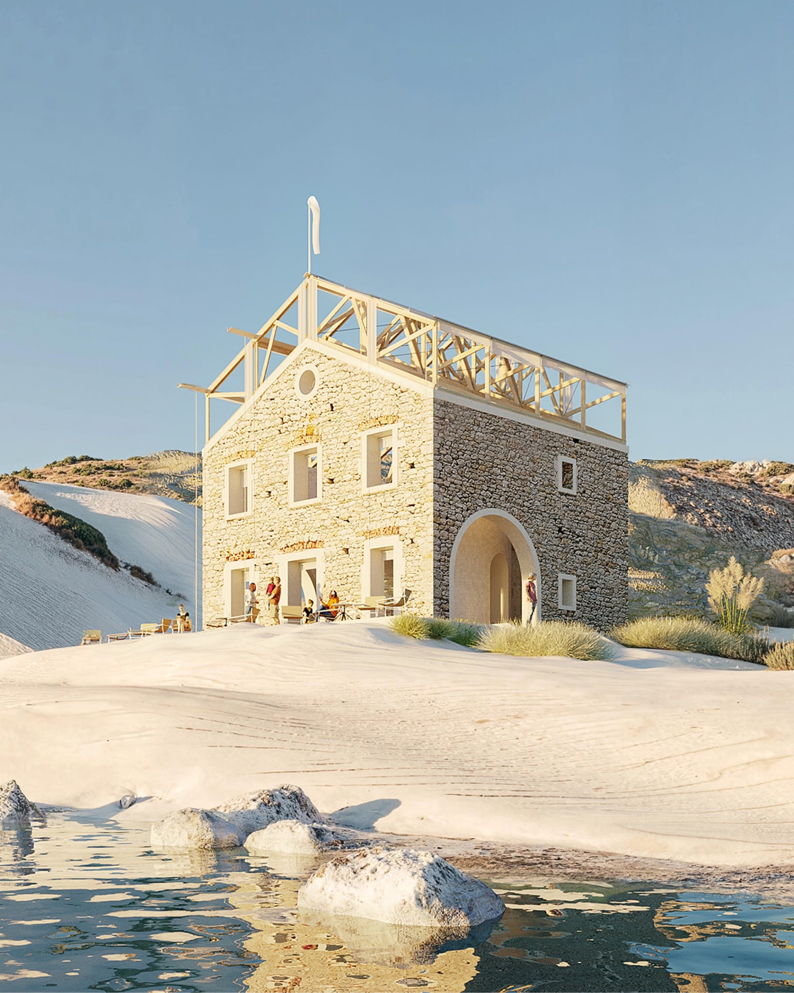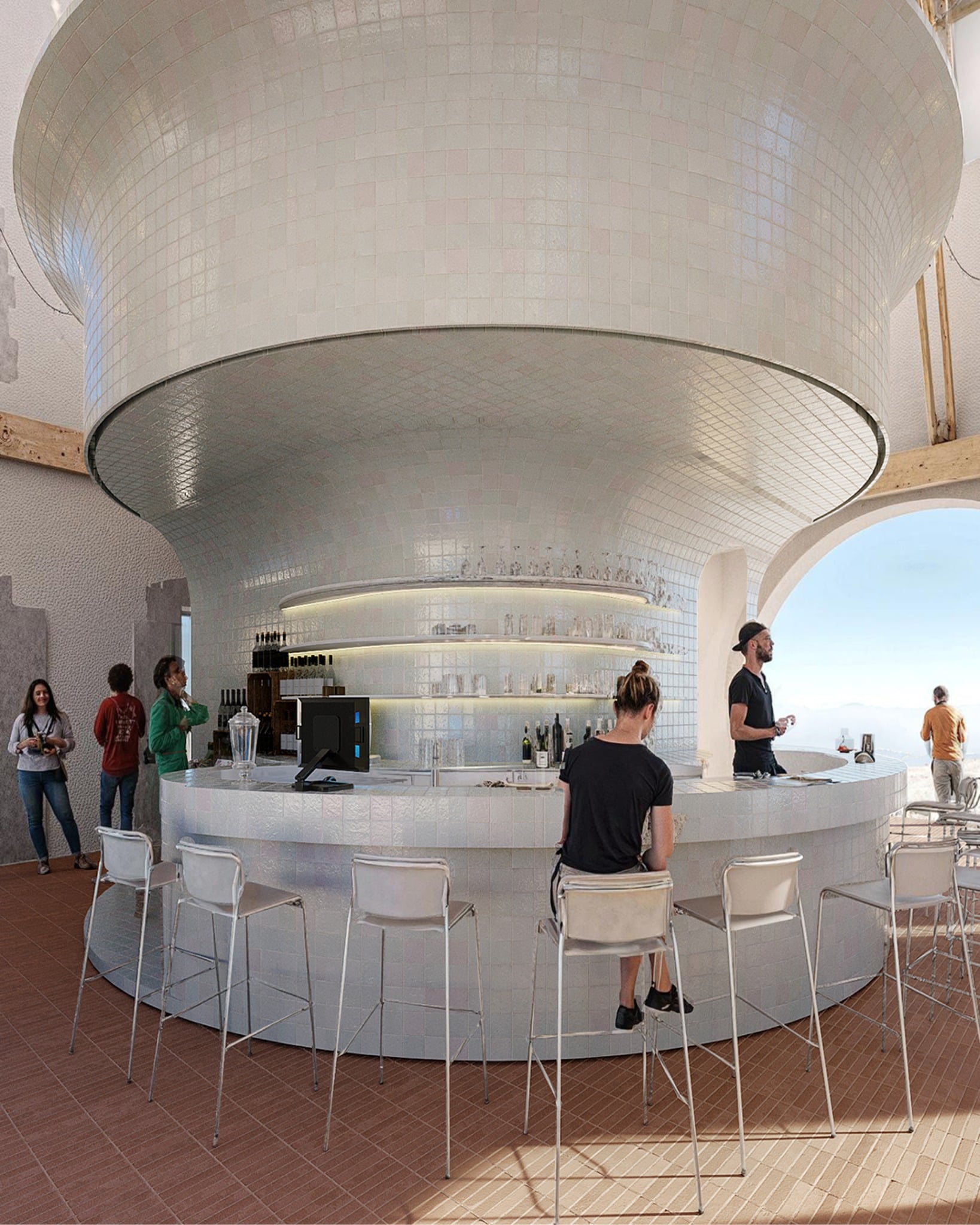 Tra i progetti finalisti figura anche “Alterato dal tempo”, firmato dagli architetti Nicolas Souchko, Perrine Chabance e Mariah Kassem (Francia – Libano), che hanno scelto di leggere i segni dell’abbandono come memoria da custodire. La loro proposta immagina la Casa doganale come luogo di accoglienza e di racconto del territorio, capace di restituire dignità a una struttura simbolica.