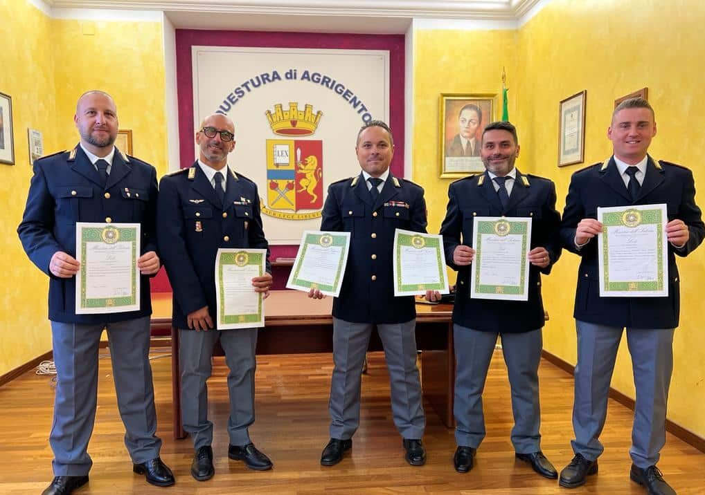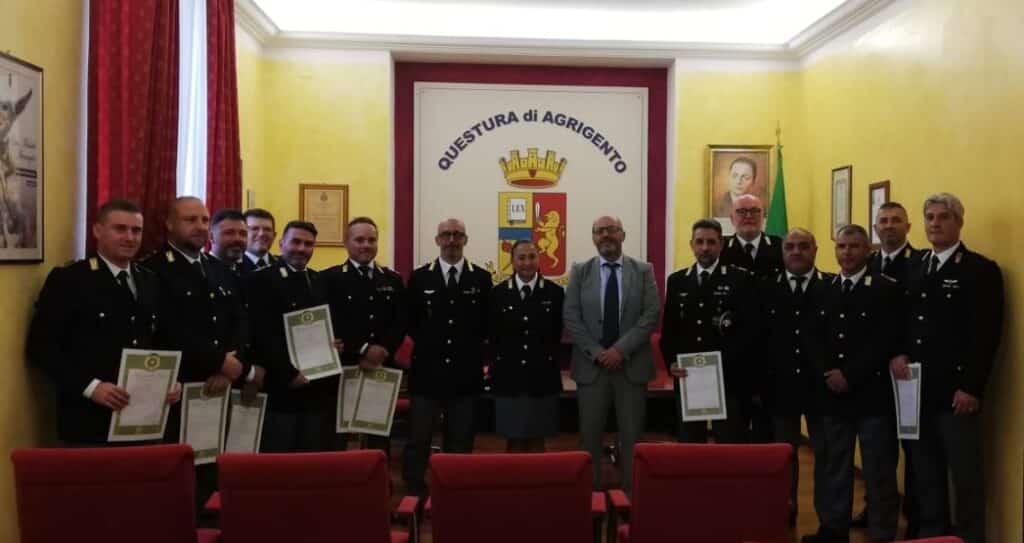 Sono stati consegnati dal questore Emanuele Ricifari i riconoscimenti a tredici poliziotti della Questura di Agrigento, per essersi particolarmente distinti in servizio. La consegna durante una sobria cerimonia presieduta dal vicario del questore Francesco Marino. Si riportano di seguito i nominativi dei premiati e le motivazioni degli attestati di lode.