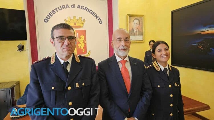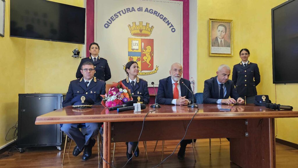 Il questore Tommaso Palumbo, alla presenza del vicario Carlo Mossuto, questa mattina, ha presentato ufficialmente i due nuovi funzionari assegnati alla Questura di Agrigento e che faranno parte del suo team operativo, per imprimere maggiori e più concrete risposte di coordinamento agli uomini e alle donne della Polizia di Stato di questa Provincia. Si tratta del vice questore Damiano Lupo che dirigerà l’importante presidio del Commissariato di Pubblica sicurezza di Sciacca, e del commissario Beatrice Pennisi che prenderà servizio al Commissariato di Palma di Montechiaro.