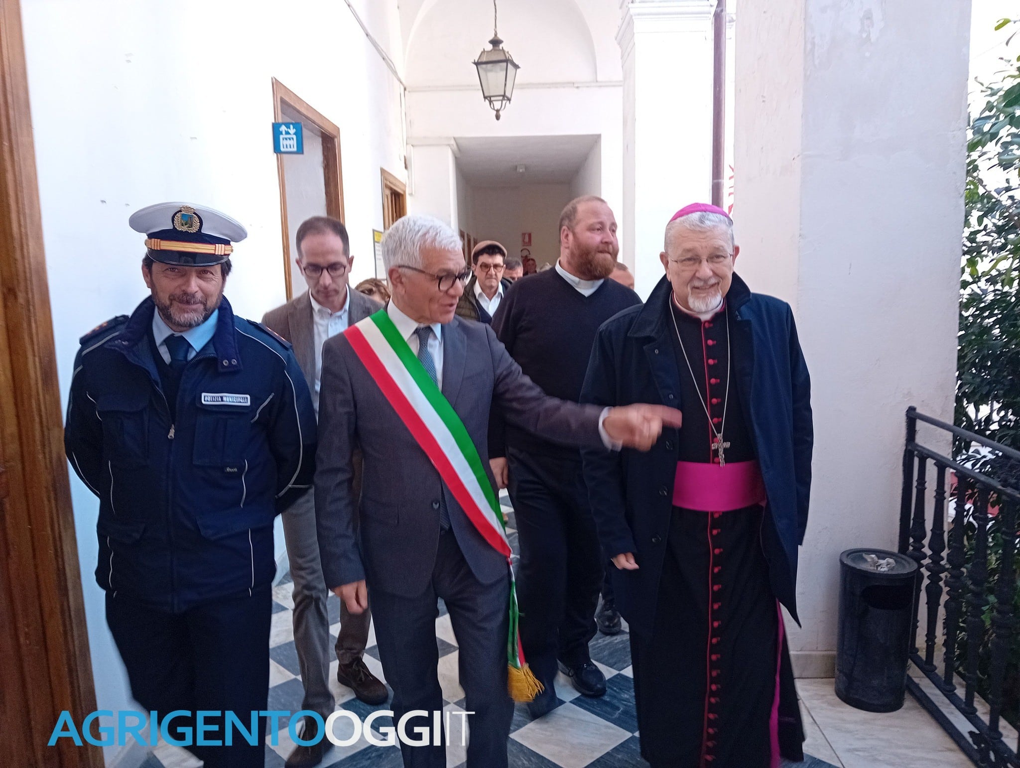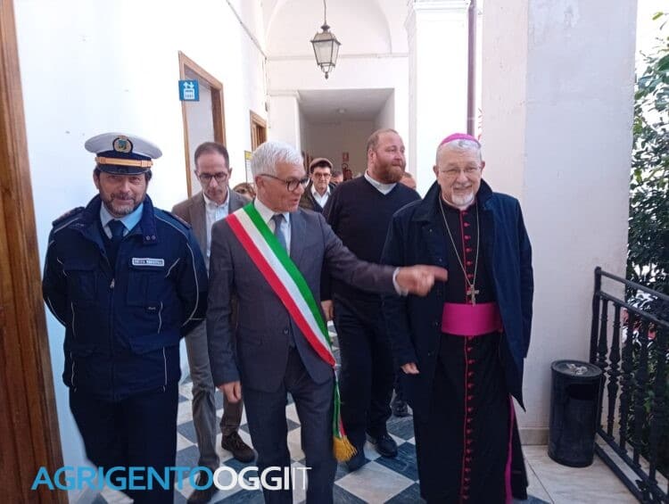 La prima tappa della visita si è svolta nell’aula consiliare del Comune, dove Mons. Damiano è stato accolto dal Sindaco Calogero Bongiorno e dagli assessori Leone, Castiglione, Gagliardo, Lauricella e Conte. Presenti anche il Presidente del Consiglio Comunale Carmelo Falco e la Vice Presidente Giovanna Matteliano, insieme ai consiglieri comunali di maggioranza e opposizione. Durante l’incontro, è stata aperta una seduta del consiglio comunale che ha visto gli interventi di diverse autorità locali. Il Sindaco Bongiorno ha accolto calorosamente l’Arcivescovo, ringraziandolo per la sua visita e donandogli alcuni libri di Leonardo Sciascia, messi a disposizione dalla Fondazione Sciascia, oltre a una medaglia realizzata dallo scultore Agnello. A seguire, sono intervenuti Valentina Zucchetto per la maggioranza consiliare e Salvatore Petrotto per la minoranza.