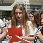 RAVANUSA. Studenti in marcia per la pace con lo slogan “La pace si insegna e si impara”. E’ stata una vera e propria giornata di festa quella di ieri a Ravanusa dove il centro storico è stato preso d’assalto da gli alunni dell’istituto comprensivo “Manzoni”. La “Marcia della Pace” del 25 maggio, nel 70° anniversario della Dichiarazione dei Diritti dell’Uomo e nel 70° anniversario della Costituzione della Repubblica italiana, è partita dal viale Lauricella per concludersi in piazza primo maggio dove, sul palco ci sono state le esibizioni dei ragazzi, tra cui la giovanissima cantante Anna Avanzato.