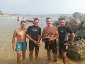 Recuperato nei pressi della spiaggia di Foce Gallina, a Licata, un elmetto americano risalente alle seconda guerra mondiale. Il reperto, che ha restituito in uno stato di conservazione eccezionale anche la maschera in gomma del tipo Polaroid in dotazione ai carristi, è stato segnalato dal sub licatese Livio Pennisi. Il recupero è stato eseguito da Fabio Amato, Giovanni morreale e Calogero Bontà, tutti sub del Gruppo Archeologico Finziade. Le concrezioni marine lo avevano saldato agli scogli. Dopo aver avvisato il personale della Soprintendenza del Mare e aver avuto il via alle operazioni di recupero, il gruppo ha lavorato per ore, con martelli e scalpelli, per liberarlo e nel breve termine restituirlo alla fruizione.
