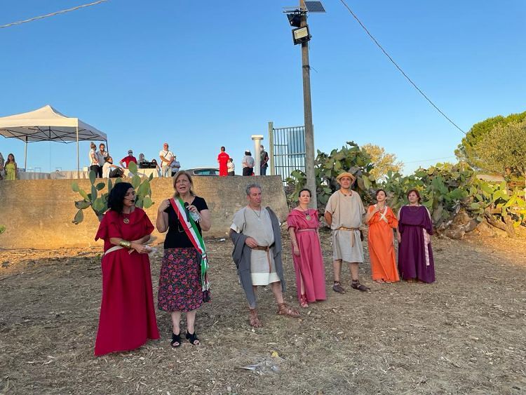 I protagonisti della rievocazione storica sono stati Viviana Caparelli, Roberto Naro, Maria Catena De Paola, Gaetano Naro, Patrizia Bellomo, Ivania Carletta e Giovanni Farina. “L’obiettivo principale della rievocazione – ha detto l’archeologa e rievocatrice Viviana Caparelli – è quello di infondere nella popolazione locale un senso di appartenenza e di partecipazione attiva: assistere ad una rievocazione storica deve essere visto come approfondimento culturale che permette di riscoprire l’autenticità di questo luogo. La memoria di una collettività è fattore attrattivo, con le proprie caratteristiche ed eccellenze storico e culturali. Più una determinata area è caratterizzata dall’unicità del proprio patrimonio materiale e immateriale più diviene meta per un turismo attento”.