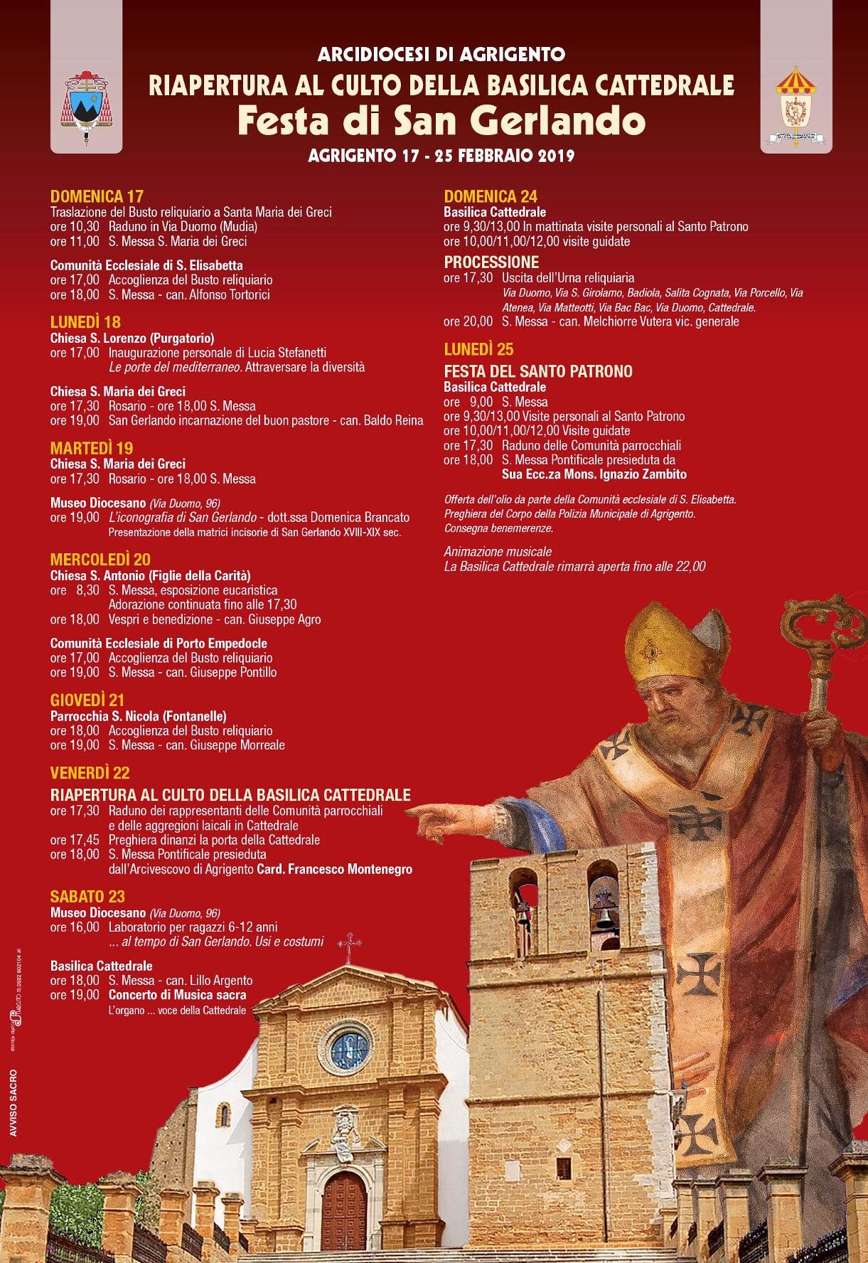 San Gerlando, patrono di Agrigento, dopo otto lunghissimi anni, torna ad essere festeggiato in «casa» propria: in cattedrale. Il 25 febbraio, il pontificale sarà affidato a monsignor Ignazio Zambito. E sarà questo, dopo la riapertura della chiesa Madre – o della «mamma malata» come l’ha sempre definita l’arcivescovo di Agrigento: il cardinale Francesco Montenegro -, il secondo, importante, momento. «Sono due momenti che fra di loro non sono separati – ha detto, ieri, don Giuseppe Pontillo, responsabile dei Beni culturali dell’Arcidiocesi, – . Due momenti di una comunità che si raduna attorno al patrono e attorno a quello che è l’elemento fondamentale della rappresentatività ecclesiale e sociale». Il programma delle iniziative per festeggiare San Gerlando quest’anno è assai nutrito. Né probabilmente poteva essere diversamente. Si comincia domenica 17, alle 10,30, con la traslazione del busto reliquiario a Santa Maria dei Greci. Alle 11, la messa a Santa Maria dei Greci. La comunità ecclesiale di Santa Elisabetta, alle 17, accoglierà il busto reliquiario e, alle 18, si celebrerà la santa Messa. L’indomani, alla chiesa di San Lorenzo (Purgatorio), verrà inaugurata la personale di Lucia Stefanetti: «Le porte del mediterraneo. Attraversare la diversità». Nel pomeriggio, a Santa Maria dei Greci, il rosario e poi “San Gerlando incarnazione del buon pastore”. Martedì 19, alle 17.30, rosario e alle 18 la santa messa. Al museo diocesano, alle 19, verrà invece inaugurata la mostra “L’iconografia di San Gerlando” di Domenica Brancato. Verranno presentate le matrici incisorie di San Gerlando XVIII – XIX secolo. Mercoledì 20, alla chiesa di Sant’Antonio (Figlie della Carità), alle 8.30, santa messa e adorazione continuata fino alle 17.30. Alle 18 i Vespri e benedizione. La comunità ecclesiale di Porto Empedocle, alle 17, accoglierà invece il busto reliquiario del santo e alle 19 si riunirà per la messa. Giovedì 21, il busto reliquiario arriverà alla parrocchia di San Nicola di Fontanelle. Alle 18, appunto, l’accoglienza e alle 19 seguirà santa messa. Venerdì 22, alle 17.30, sarà il grande – veramente storico – momento: verrà riaperta al culto la cattedrale. Per le 17,30 è previsto un raduno dei rappresentanti delle comunità parrocchiali e delle aggregazioni laicali, poi alle 17.45 si svolgerà una preghiera dinnanzi alla porta della chiesa Madre e alle 18 si terrà la santa messa con pontificale del cardinale Montenegro. Sabato 23, al museo diocesano, alle 16, spazio a un laboratorio per ragazzi tra i 6 e i 12 anni intitolato «Al tempo di San Gerlando. Usi e costumi». In cattedrale, alle 18, si terrà una santa messa seguita, alle 19, da un concerto di musica sacra per organo. Domenica 24, sempre in Cattedrale, dalle 9.30 alle 13, spazio alle visite personali al santo patrono, mentre dalle 10 alle 12 sono previste visite guidate. Alle 17.30 l’urna reliquiaria uscirà in processione seguendo il percorso via Duomo, via San Girolamo, Badiola, salita Cognata, via Porcello, via Atenea, via Matteotti, via Bac Bac, via Duomo e infine in cattedrale, dove, alle 20 si terrà la santa messa. Lunedì 25, giorno del santo patrono, in cattedrale, si terrà la prima messa alle 9, seguita tra le 9.30 e le 13 dalle visite al santo e alla struttura. Alle 17.30, raduno delle comunità e alle 18 il pontificale presieduto da monsignor Ignazio Zambito.