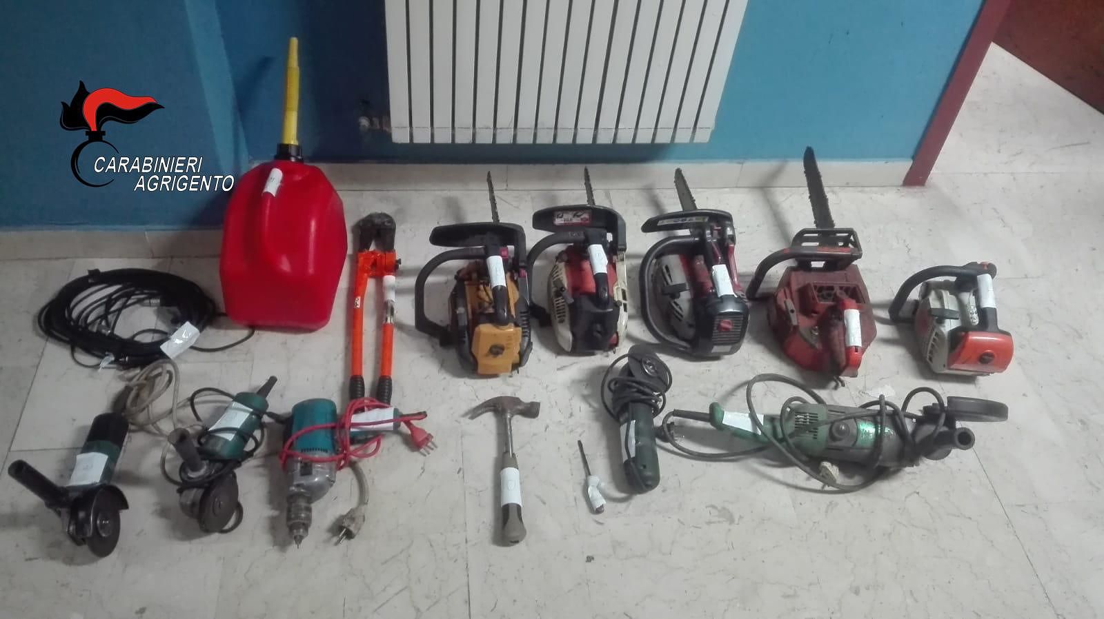 Dopo le prime verifiche ai documenti, visto il loro insolito nervosismo, è stato forte il sospetto dei militari che i tre potessero occultare qualcosa e così, nel corso della successiva perquisizione, dal portabagagli dell’auto è saltato fuori un consistente quantitativo di oggetti, in particolare motoseghe, flex ed attrezzature varie, subito sequestrati. Inoltre, durante le verifiche, è emerso che l’auto utilizzata dal terzetto era stata rubata alcuni giorni prima proprio a Ribera.