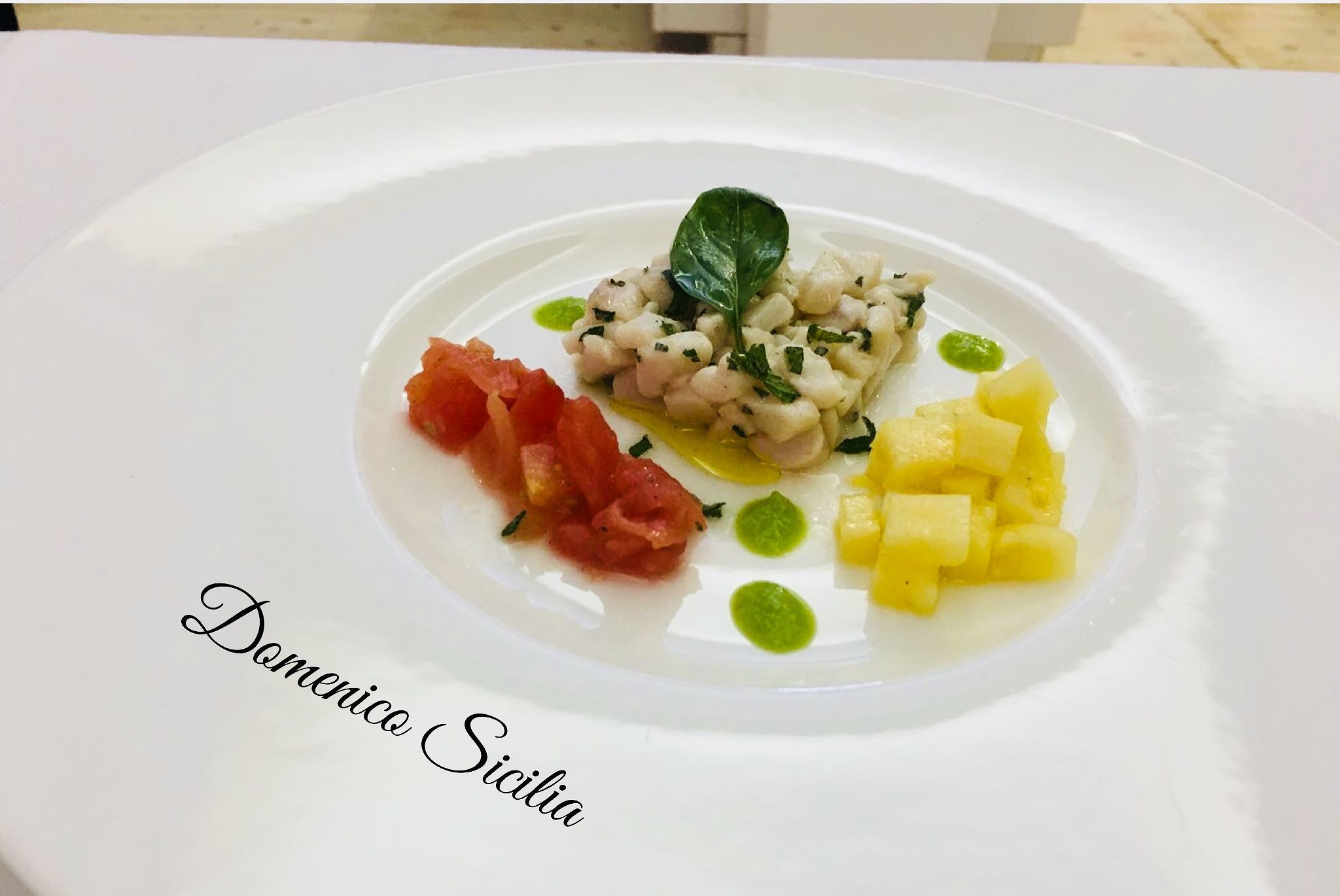 Vogliamo iniziare a proporvi per l’estate delle ricette sfiziose  veloci, di facile realizzazione e fresche, “Ricette sotto l’ombrellone” ed ecco a voi oggi all’esordio un piatto ideato dal talentuoso  Domenico Sicilia studente dell’Istituto Alberghiero Ambrosini di Favara, piatto con il quale ha partecipato ad un concorso culinario in una trasmissione televisiva “Chef per una sera” (di Carmen Morello)  in un gioco di squadra.