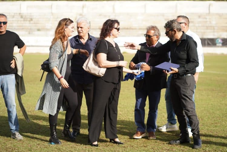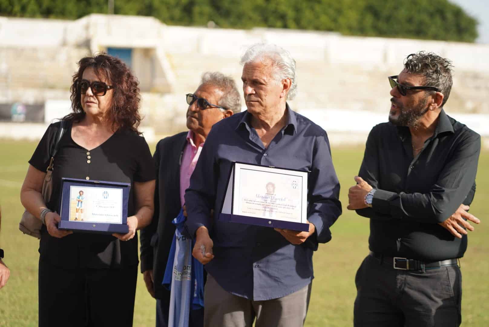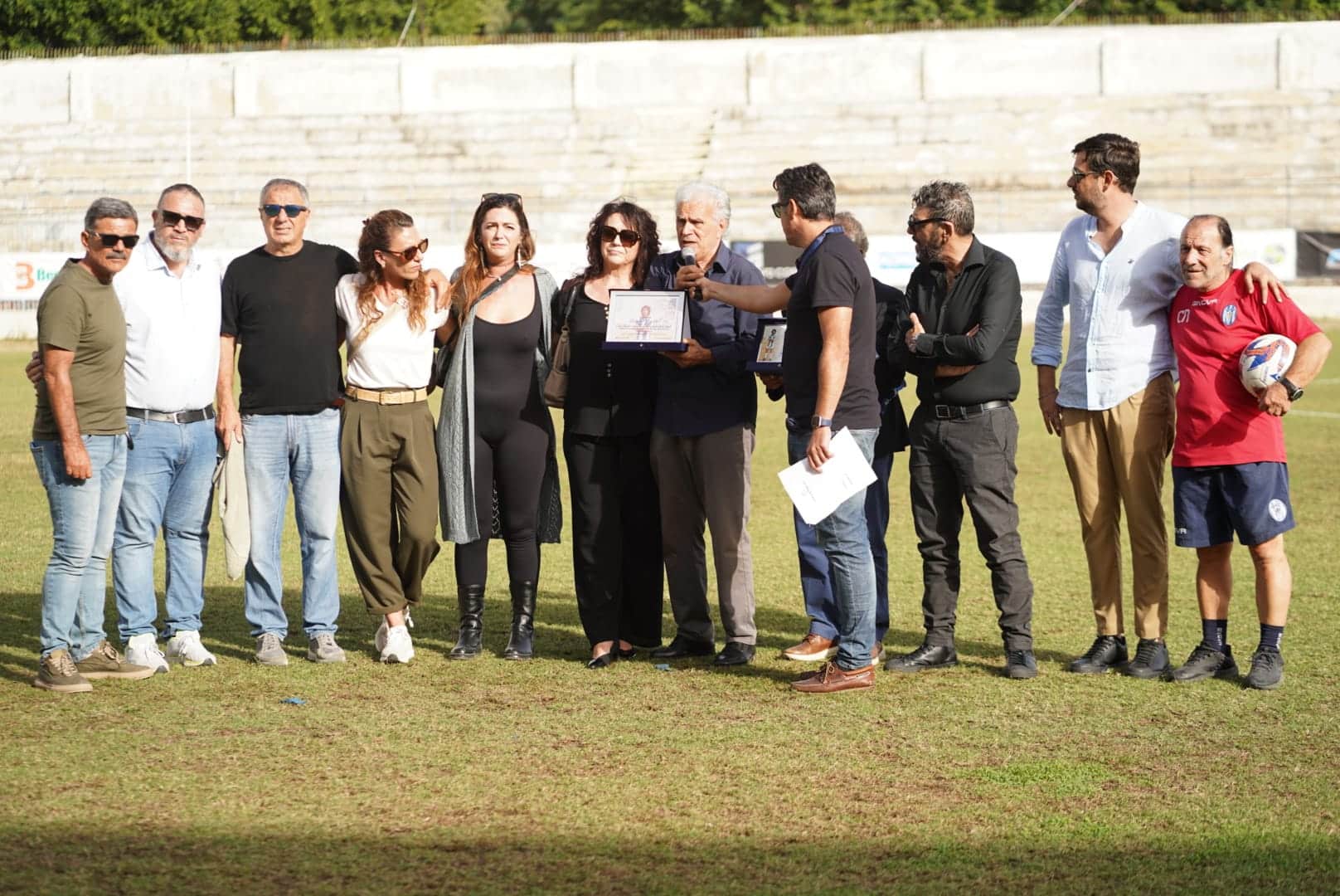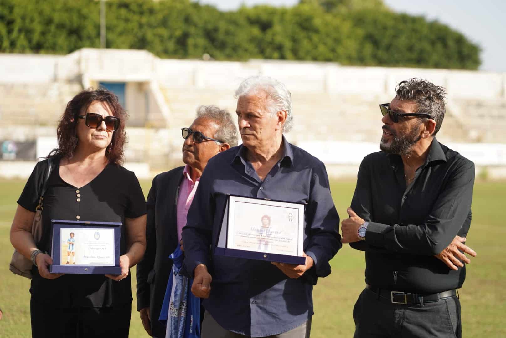 Sul terreno di gioco, accanto ai dirigenti biancazzurri — il presidente Salvatore La Porta e Salvatore Falzone, responsabile della parte economica del club — erano presenti la moglie Laura, le figlie Sara e Giulia e diversi ex compagni di squadra: Peppe Catalano, Gaetano Longo, Giovanni Oddo, Gerlando Piparo e Matteo Colucci, quest’ultimo promotore dell’iniziativa e legato a Quercioli da un profondo rapporto di amicizia e di militanza calcistica.