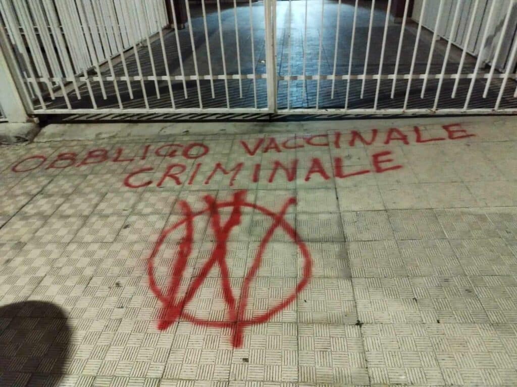 “Nazisti infami” sul muro della sede di Fratelli d’Italia in via Gioeni. “I vax uccidono” e “Id digitale morte della libertà” sulle pareti dell’agenzia di riscossione delle tasse in via Metello e davanti la vicina scuola “Tortorelle”. E nuove scritte sono state trovate in altre zone di Agrigento: “obbligo vaccinale criminale” sul marciapiede all’altezza del cancello d’ingresso della scuola Esseneto nell’omonima via e “Sindacati nazisti traditori del popolo” sulla facciata esterna della palazzina che ospita un patronato, in via Vincenzo Gaglio, nel rione del campo sportivo “Esseneto”.