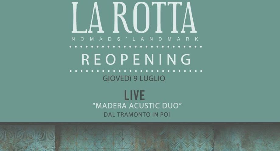 E’ iniziato il conto alla rovescia per l’inaugurazione de La Rotta, in programma domani dal tramonto in poi con Madera Acustic Duo, la location sita in viale Dune a San Leone, nata da un progetto, condiviso anche questo, di Andrea e Mirko Franco. Progetto che quest’anno rivoluziona il modo di vivere l’estate: tanti appuntamenti con ingressi contingentati, musica, buon cibo e cocktail con materie prime di assoluta qualità per una stagione che ha tutte le premesse per essere annoverata tra le ‘indimenticabili’.