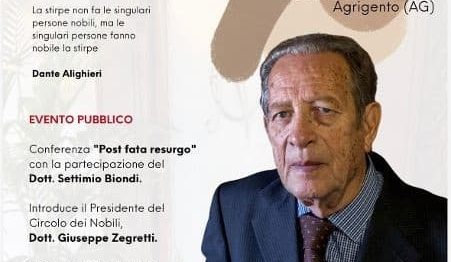 Venerdì 24 ottobre alle ore 17.30 il centro di Cultura contemporanea Circolo dei Nobili di Agrigento ospiterà una conferenza dal titolo “Post fata resurgo”. L’incontro si svolgerà nel salone delle conferenze della storica sede del Circolo dei Nobili di Via Atenea, al numero civico 307. Introdurrà i lavori Giuseppe Zegretti, presidente del Circolo dei Nobili e promotore della sua rinascita.