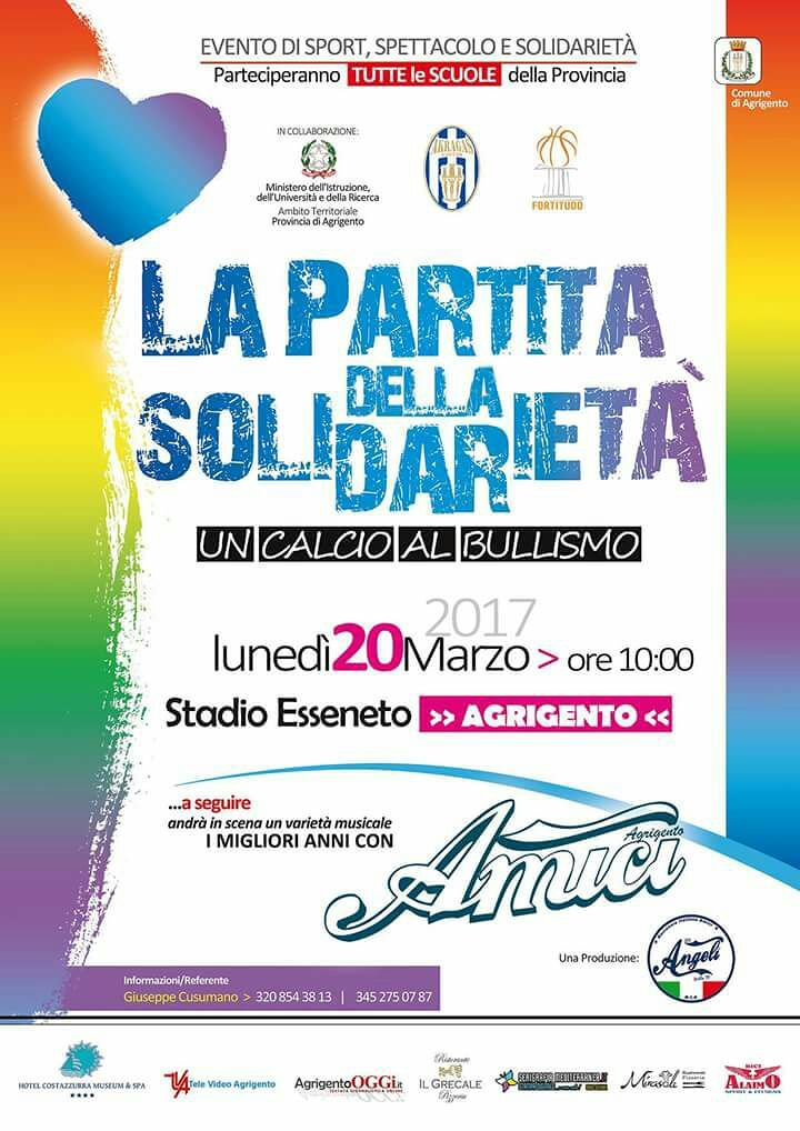 Anche la Lega Pro scende in campo per dire NO al BULLISMO. Dopo il successo della passata edizione, ritorna ad Agrigento, il prossimo 20 marzo, “La Partita della Solidarietà” – “Un calcio al bullismo”. Si tratta di un progetto rivolto ai giovani sulla prevenzione della lotta contro il BULLISMO, un fenomeno presente, soprattutto, in ambito scolastico. La Lega Pro, quest’anno, condivide in stretta sinergia con la Società Akragas Calcio questa importante manifestazione. Infatti, i giocatori biancoazzurri saranno i veri ambasciatori verso gli studenti delle scuole che parteciperanno al progetto di sensibilizzazione attraverso incontri ed iniziative collaterali che avranno luogo all’interno degli istituti scolastici. La “Partita della Solidarietà – Un calcio al bullismo” vedrà sfidarsi, sul manto erboso dello stadio Esseneto, con inizio alle ore 10, una formazione composta da giocatori dell’Akragas, della Fortitudo Moncada Agrigento del campionato di A2 di pallacanestro maschile e di studenti, e la Nazionale Italiana Amici di Canale 5. L’obiettivo è quello di trasmettere un forte messaggio educativo e di sensibilizzazione verso un fenomeno assai presente in ambito scolastico, attraverso gli ambasciatori di questo progetto, gli artisti, e gli atleti del basket e del calcio, che detengono un grado di comunicazione senza pari, ottenendo sempre un’importante e significativa risposta. Il presidente dell’Akragas, Silvio Alessi, si dice entusiasta dell’iniziativa e, più in particolare, della fattiva collaborazione della Lega Pro per una causa di grande attualità tra i giovani.