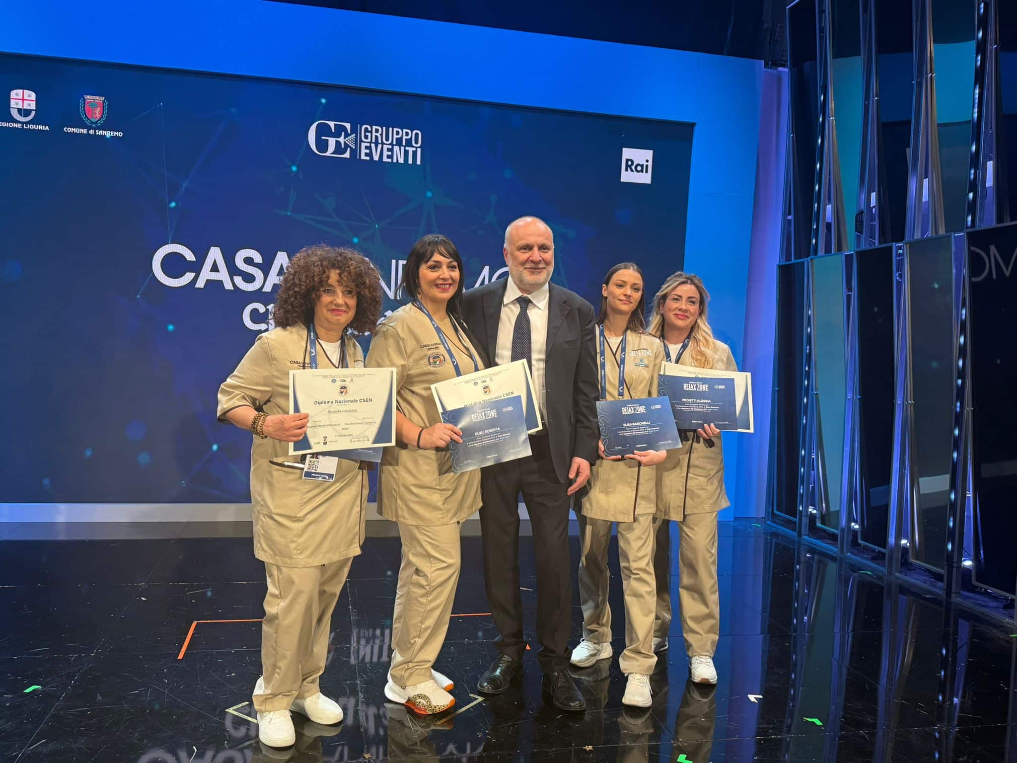 Il gruppo Relax Zone ha inoltre ricevuto un riconoscimento ufficiale da parte del patron di Casa Sanremo per il contributo offerto durante i giorni del Festival, a testimonianza dell’apprezzamento per il servizio di supporto al benessere garantito ad artisti e operatori del settore.