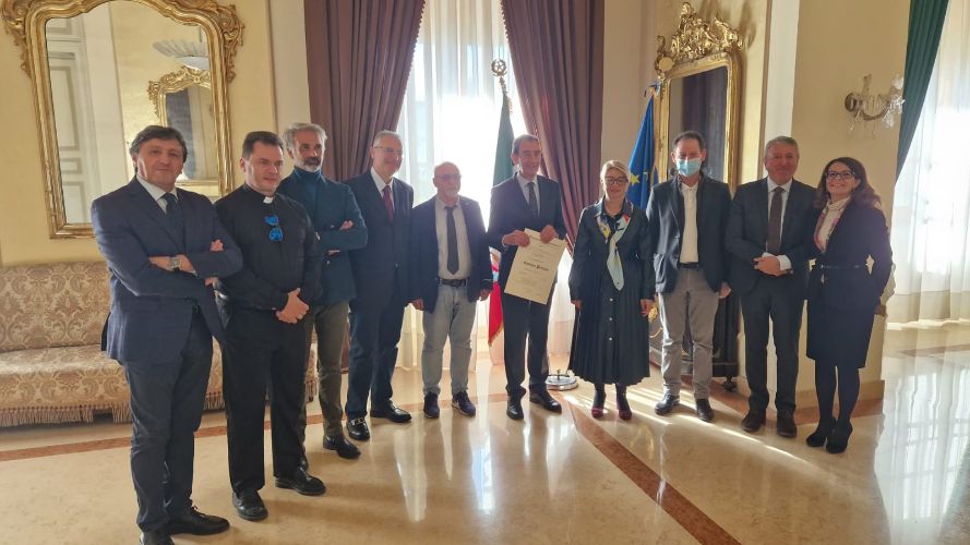 Conferimento onorificenza di Cavaliere dell’ordine al merito della Repubblica Italiana a Salvatore Pezzino. Al Palazzo del Governo, il Prefetto di Agrigento Maria Rita Cocciufa gli ha consegnato l’onorificenza di Cavaliere, conferita dal Presidente della Repubblica Italiana lo scorso 2 giugno. La breve cerimonia ha visto la partecipazione del Commissario della Camera di Commercio e del Sindaco di Agrigento. Nell’occasione, il Prefetto ha espresso vivo compiacimento “per l’importante Onorificenza ad una personalità da sempre impegnata in ruoli istituzionali e di promozione del territorio.”