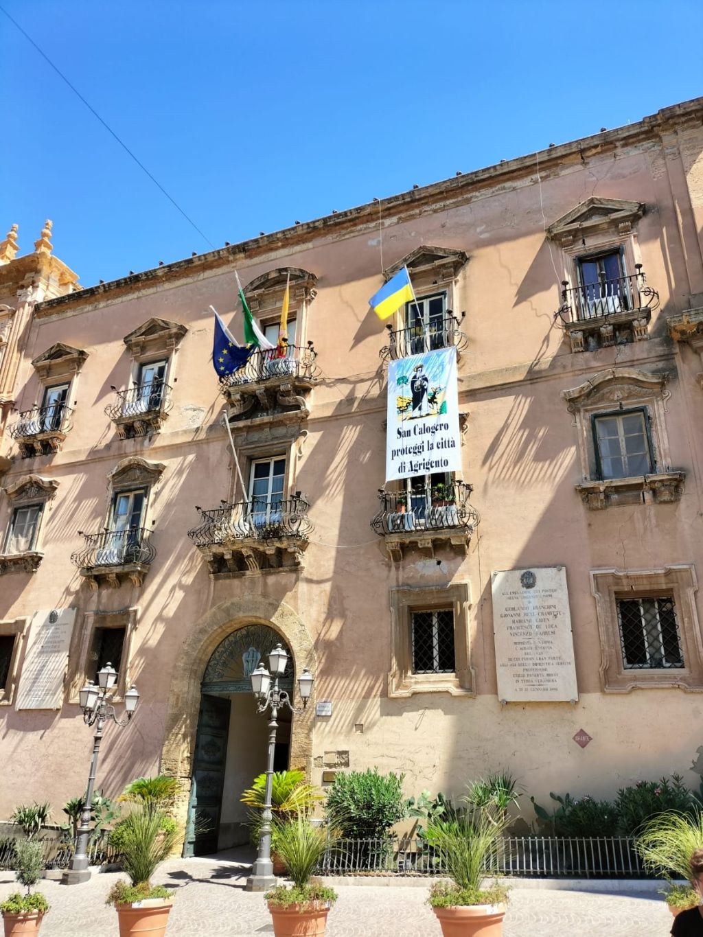 Lo stendardo raffigurante San Calogero che fu di Lillo Salsedo è stato affisso nel prospetto del municipio di Agrigento. Una volontà del sindaco, Francesco Micciché, subito sposata da Peppe e Alessandro Salsedo, i figli dell’agrigentino, deceduto qualche anno fa, molto legato alla figura del Santo nero e alla città. Domani, seconda domenica di San Calò, il portale del palazzo dei Giganti sarà aperto e il Santo entrerà nel chiostro, davanti l’ingresso del teatro Pirandello.
