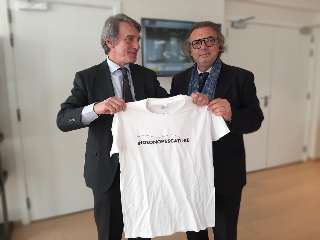 Nella foto , il presidente del Parlamento Europeo David Sassoli ed il sindaco di Lampedusa e Linosa Totò Martello durante un incontro del febbraio 2020)