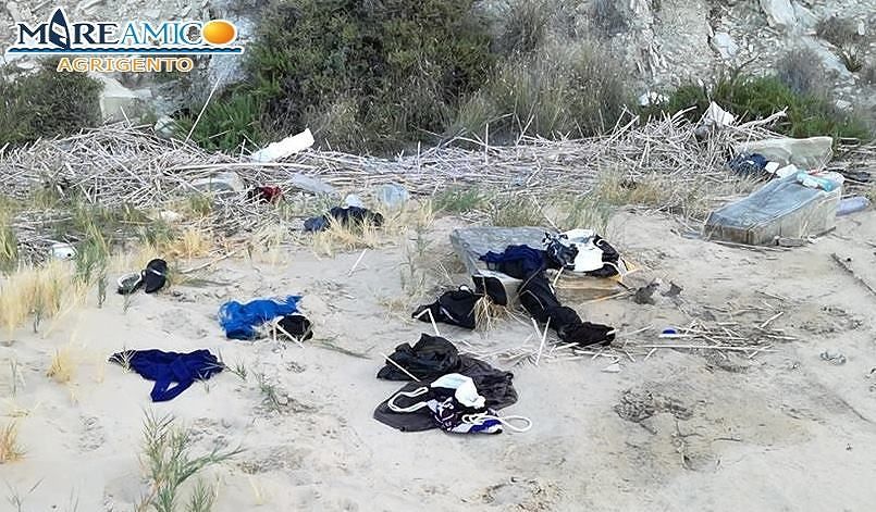 La denuncia è di MareAmico Agrigento che mostra, attraverso delle foto, degli abiti abbandonati ed una piccola imbarcazione in legno.