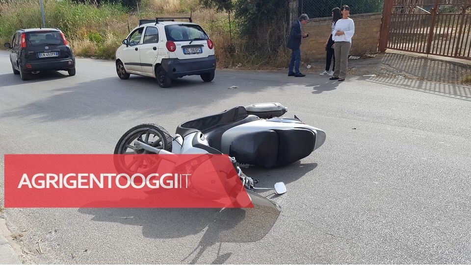 AGRIGENTO. Un incidente stradale si è verificato nel primo pomeriggio a San Leone. A scontrarsi una Chevrolet Matiz ed uno scooter. Ad avere la peggio il conducente del ciclomotore, un ragazzo, che per precauzione è stato trasportato in ospedale per le cure del caso. Sul posto la squadra antinfortunistica della polizia locale di Agrigento che ha eseguito i rilievi. La dinamica dello scontro non è chiara.
