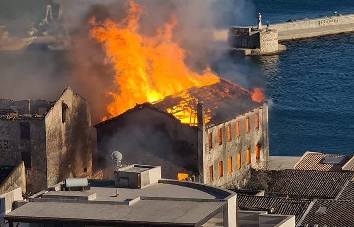 Scoppia incendio vicino l’area portuale, vecchio edificio distrutto dalle fiamme