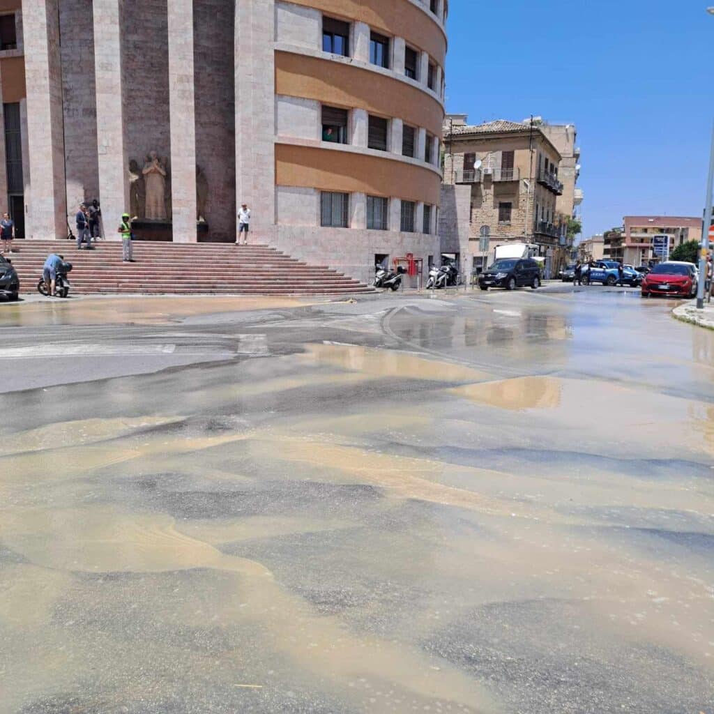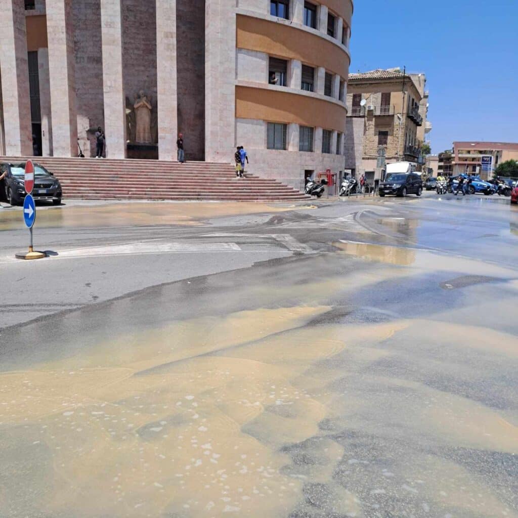 L’asfalto si è sollevato con la conseguente fuoriuscita di acqua e fango che hanno invaso la strada, non permettendo il passaggio di pedoni, auto, bus e mezzi a due ruote. Ennesima grave perdita dovuta alla rottura di un tubo nel sottosuolo. E’ successo poco prima delle 13 a ridosso della scalinata della Posta Centrale e a pochissima distanza della Questura di Agrigento. L’arteria è stata ricoperta di “giallo”.
