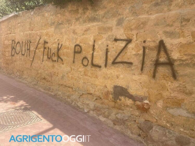 “Bouh/Fuck Polizia” e “Acab seguita dai numeri 1.2.1.3”. Sono le scritte offensive contro la polizia comparse sul muretto esterno di una proprietà privata di via San Francesco e nella facciata esterna di un edificio nei pressi della Basilica dell’Immacolata, nel centro storico di Agrigento. Le scritte sono state realizzate con delle bombolette spray di colore nero.