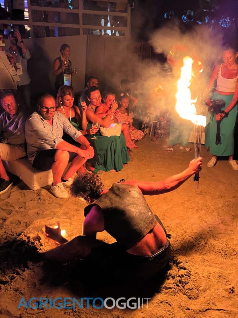 Il magico spettacolo di fuoco curato da Natale di Mora ha aggiunto un tocco di incanto all’evento. Le fiamme danzanti hanno illuminato la spiaggia, creando un’atmosfera avvolgente e affascinante per i partecipanti.