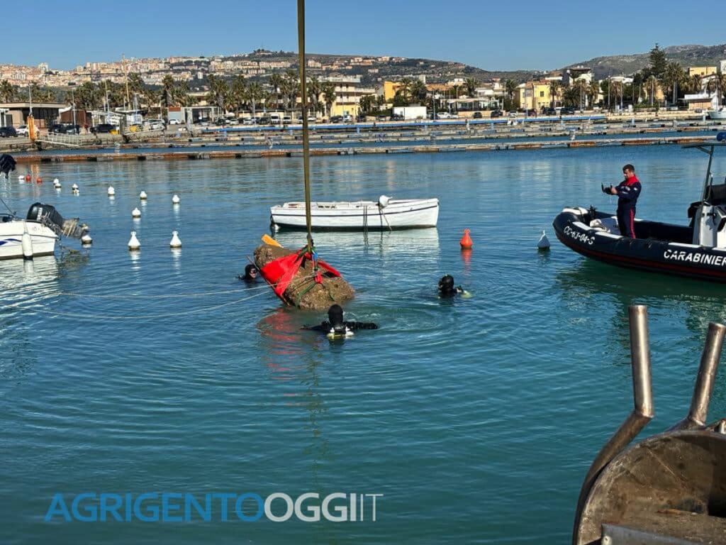 Nello specchio d’acqua davanti alla Babbaluciara al porticciolo San Leone è stato recuperato un reperto archeologico di interesse. Il Sovrintendente del Mare, Ferdinando Maurici, ha dichiarato la necessità di esaminare attentamente il reperto prima di trarre conclusioni.
