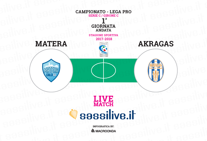 Calcio d’inizio alle 18,30 di sabato 26 agosto per Matera-Akragas, gara inaugurale del campionato di serie C 2017-2018. Dirige l’incontro Federico Dionisi di L’aquila, assistito da Domenico Palermo e Michele Falco di Bari.