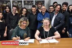 Siglata ieri 25 Maggio una importante convenzione tra il Direttore dell’Istituto Superiore di Studi Musicale “A. Toscanini” di Ribera Prof.ssa Mariangela Longo e il Dirigente Scolastico del Liceo Scientifico e Musicale Statale di Agrigento “E. Majorana”, Prof.ssa Teresa Maria Rita Buscemi. Un momento storico per il territorio per l’avvio di una proficua collaborazione ai fini della didattica musicale e delle attività artistiche ad essa correlate, prevista dalle nuove normative ministeriali nell’ottica della continuità degli studi musicali e dell’armonizzazione dei percorsi formativi tra il Liceo Musicale e il Toscanini, Istituzione di Alta formazione Artistico Musicale dove gli studenti del Liceo potranno effettuare la formazione Scuola-lavoro e completare gli studi musicali frequentando i Corsi Universitari di Primo e Secondo Livello AFAM. L’evento, conclusosi con una tavola rotonda tra i docenti delle due istituzioni e caratterizzato da una calorosa accoglienza da parte del Dirigente Scolastico e dei docenti e studenti del liceo, è stato suggellato da un concerto molto apprezzato degli studenti del Toscanini che hanno rappresentato gran parte dei dipartimenti attivi presso l’Istituto, con la partecipazione di: Paolo Alongi, Angelo Prazza, Andrea Carlo Raineri (Chitarre), Francesco Russello, Francesco Mistretta, Gabriele Zambuto, Maria Elena Caramella (Violini), Calogero Marotta, Benjamin Scaglione, Margherita Tortorici (Violoncelli), Giuseppe Spataro, Giuseppe Francolino, Alessio Francolino, Calogero Lupo, Eliana Borsellino (Pianoforte), Stefan Cutean, Myriam Russello (Flauti), Giuseppe Parinisi (Clarinetto) Domenico Gambino, Giuseppe Oliveri, Benjamin Scaglione, Andrea Conti (Percussioni) Alessandro Schittone (Chitarra Jazz),Francesca Bongiovanni (Canto Jazz), Jole Pinto (Soprano), Giuseppe Michelangelo Infantino (Tenore) e gli accompagnatori al pianoforte M° Giusy Ines Tuttolomondo e M° Michele Salvatore.