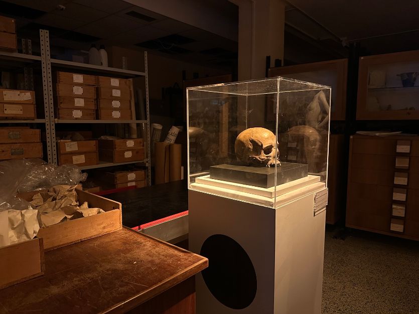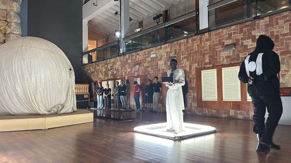 Un luogo, la sala Francesco Sinatra, dove entrano di solito solo archeologi e studiosi, e che invece da mercoledì (8 ottobre) accoglieranno gli oggetti di scena di H I Am I, a partire dalla lunga veste nera coperta da 2654 conchiglie che Simone Valsecchi ha cucito personalmente, una per ciascun migrante scomparso in mare da gennaio a oggi. E ancora, altri oggetti, ognuno dal significato importante, in stretto dialogo con lo spazio, e con il tempo e il luogo attorno. Un’occasione unica, quella di H-I am I, per entrare in spazi di studio, dove ogni reperto pare aver trovato il suo posto.