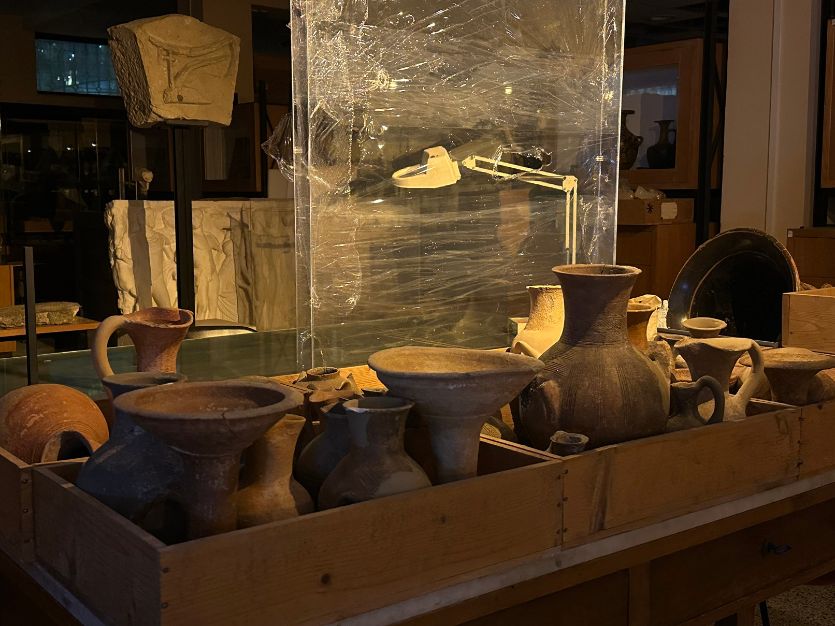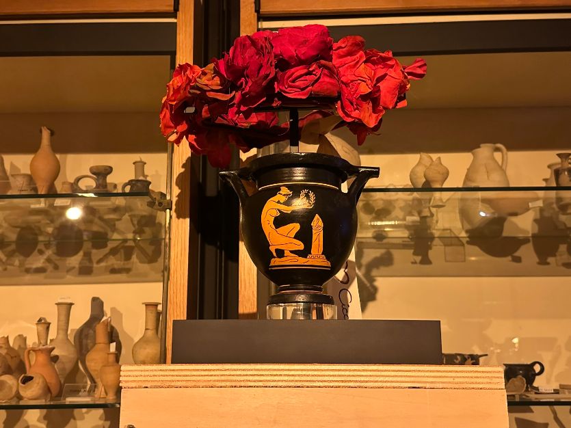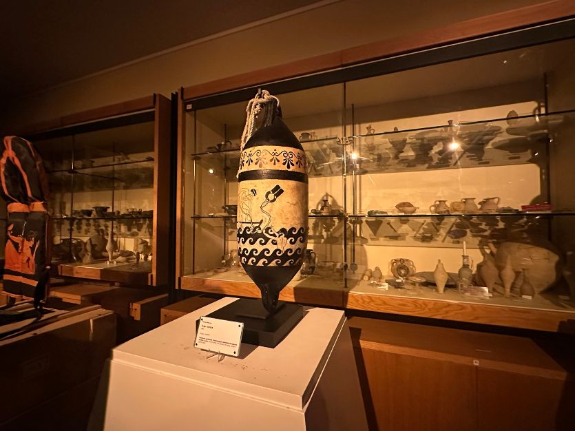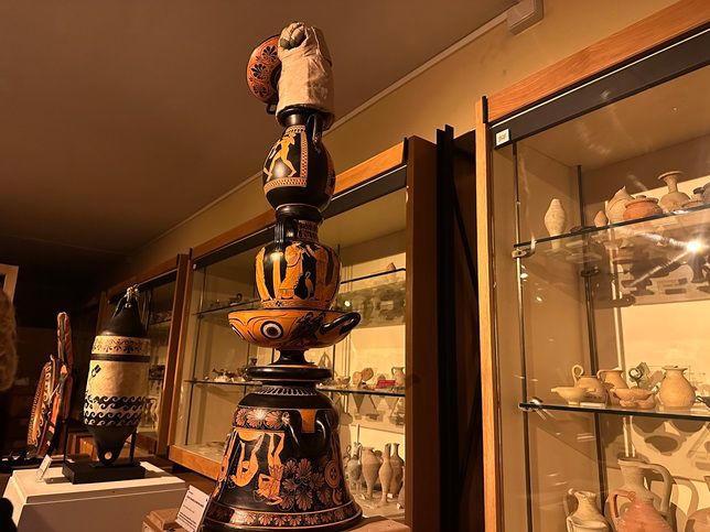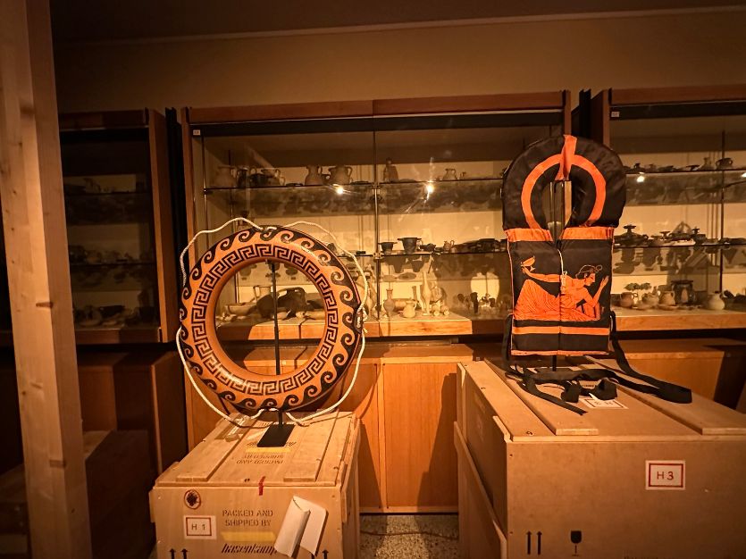 Il progetto di Simone Valsecchi, tra quelli fondanti il dossier di Agrigento Capitale Italiana della Cultura, è un viaggio visionario in un universo che pare surreale, queer e parallelo ma, a ben guardare, ha infiniti rivoli nell’oggi. Così il galleggiante o il giubbotto di salvataggio con scene rivisitate, ma che starebbero bene su una ceramica attica; le sculture e le installazioni, un teschio che rende omaggio al Teatro e nello stesso tempo è un tributo alla ricerca. “Mi avete dato la possibilità di entrare nel Sancta Sanctorum del museo Griffo, dove i miei piccoli oggetti diventano simboli della necessità di sostenere la cultura, l’unica che può liberarci dalla violenza quotidiana” dice Simone Valsecchi.