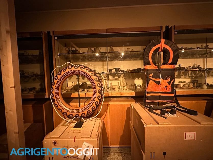 Il progetto di Simone Valsecchi, tra quelli fondanti il dossier di Agrigento Capitale Italiana della Cultura, è un viaggio visionario in un universo che pare surreale, queer e parallelo ma, a ben guardare, ha infiniti rivoli nell’oggi. Così il galleggiante o il giubbotto di salvataggio con scene rivisitate, ma che starebbero bene su una ceramica attica; le sculture e le installazioni, un teschio che rende omaggio al Teatro e nello stesso tempo è un tributo alla ricerca. “Mi avete dato la possibilità di entrare nel Sancta Sanctorum del museo Griffo, dove i miei piccoli oggetti diventano simboli della necessità di sostenere la cultura, l’unica che può liberarci dalla violenza quotidiana” dice Simone Valsecchi.