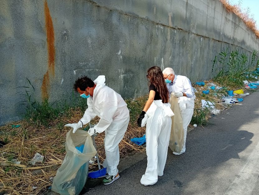 Sindaco e assessori puliscono strada invasa dai rifiuti