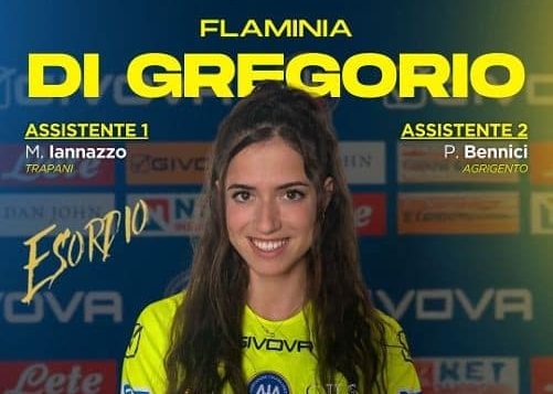 La sezione Aia di Agrigento celebra un momento storico: domenica prossima l’arbitro agrigentina Flaminia Di Gregorio farà il suo esordio nel campionato di Eccellenza, dirigendo la gara tra San Vito Lo Capo e Cus Palermo. Si tratta di un traguardo senza precedenti per la sezione agrigentina: per la prima volta, infatti, una donna è stata designata alla direzione di una gara del massimo campionato dilettantistico regionale.