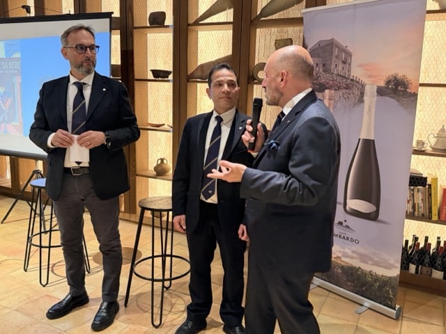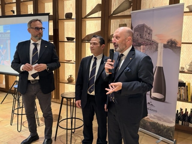 Durante la serata, degustazione di Catarratto: un Catarratto di altura 2025, un bianco fresco con grandi caratteristiche di affinamento. Poi le bollicine, lo spumante metodo Charmat “Sua Altezza”, e il “Nero d’Altura” Riserva 2023, un vitigno storico del territorio di Agrigento e Caltanissetta. Un vino di grande qualità che l’azienda esporta nei mercati esteri, soprattutto in Germania, dove è molto apprezzato in una vasta rete di enoteche.