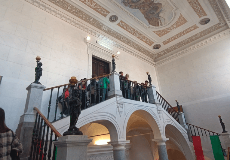 Successivamente, i giovani studenti hanno avuto l’opportunità di ammirare gli straordinari affreschi nella Scala Reale, che raffigurano importanti figure agrigentine come Foderà, Fazello e Agatoche. Hanno anche potuto esplorare la Galleria dei Presidenti della Provincia Regionale di Agrigento degli ultimi cento anni.