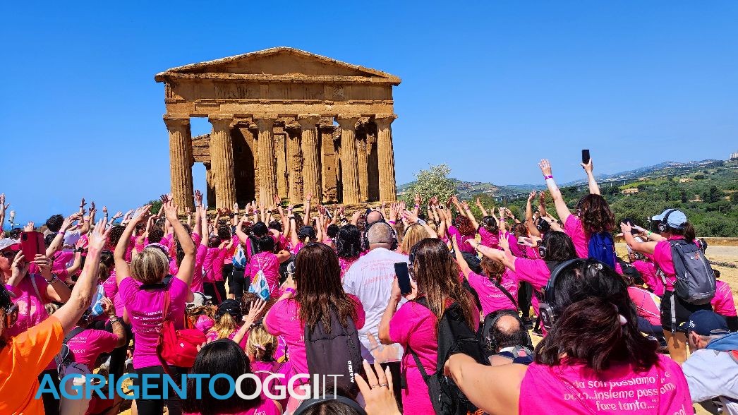 La Cittadella sanitaria al Viale della Vittoria di Agrigento, questa mattina, è stata letteralmente travolta dall’energia di Onde Rosa. Donne e uomini di ogni età, perfino giovanissimi, accolti dallo staff dell’associazione, hanno indossato la maglia rosa o bianca e hanno camminato fianco a fianco fino al tempio della Concordia, partecipando ai workout e ascoltando i messaggi degli esperti sulla salute femminile. Altissima la partecipazione, con persone arrivate anche da Sciacca, Ribera, Canicattì e altri comuni della provincia.