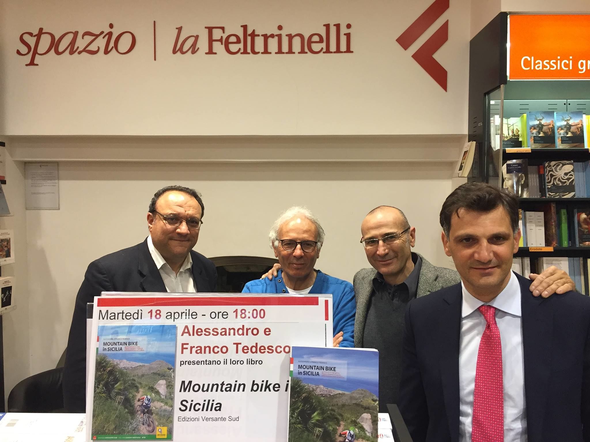 Dopo la presentazione del libro “Mountain Bike in Sicilia” degli autori agrigentini Alessandro e Franco Tedesco il 13 aprile scorso presso Casa Sanfilippo,  e dopo essere stato protagonista il mese scorso all’ITB di Berlino con la conferenza stampa tenuta dall’Assessore al Turismo della Regione Antony Barbagallo, il volume commissionato della casa editrice milanese “Versante Sud”, è stato pure presentato a Palermo il 18 Aprile presso la libreria Feltrinelli di Via Cavour. Ad essere presenti, l’Assessore Antony Barbagallo, per i saluti, i relatori Maurilio Caracci – Docente di Marketing e Comunicazione presso UniPa -, Chiara Minì – Presidente Palermo Ciclabile -, Gori Sparacino – Presidente Distretto Turistico Vino e Sapori –, Stefano Vivacqua – Autore del libro Il Complesso di Atlante, il Presidente dell’ associazione Panormus MTB Pino Cuttaia ed il Prof. Giandomenico Vivacqua.