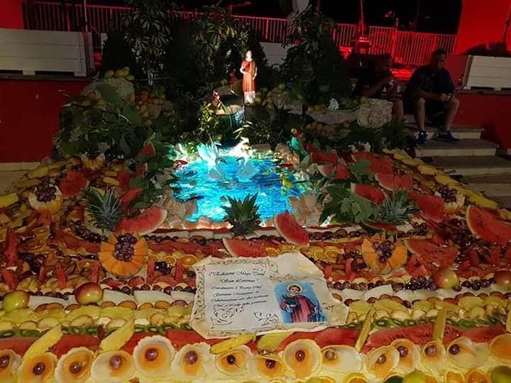 A Montaperto, provincia di Agrigento, domenica 12 agosto in occasione della festa patronale di San Lorenzo è tornato a far parlare di sé l’inimitabile e unico pastry chef Giovanni Mangione con una delle sue magnifiche mega torte che hanno incantato e attirato tante persone in piazza. Si è trattato di un vero capolavoro di pasticceria architettonica, Giovanni insieme ai suoi colleghi tra cuie le lady chef Concetta Marino e Carmelina Giordano e Lillo Fragapane l’ha decorata con tanta frutta fresca e l’ha arricchita con la costruzione di una cascata il cui getto d’acqua “vero” si versava in un grande lago con cigni di zucchero soffiato. Come ospite d’eccellenza il Cavaliere della pasticceria siciliana Lillo Defraia con il patrocinio dell’ associazione AICS. Quindi che dire? Gio la tua creatività e bravura ci stupisce sempre, sei il nostro Michelangelo dolce!