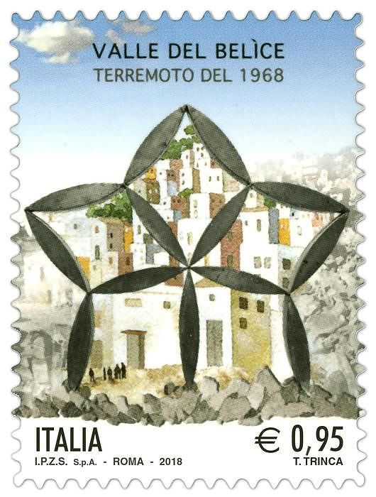 SANTA MARGHERITA BELICE. Un francobollo delle poste italiane celebrativo del terremoto della Valle del Belìce nel 50esimo anniversario, nel valore di ...