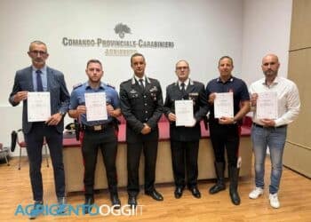 Il comandante provinciale dei Carabinieri di Agrigento premia il team per il salvataggio di una giovane madre barricata con i ...